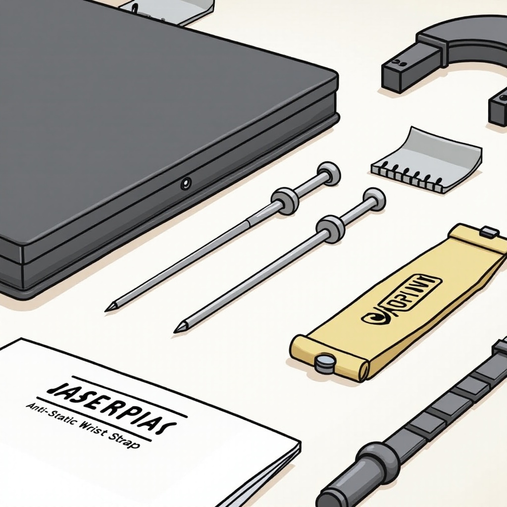 - Antistaattinen ranneke estämään staattisen purkausta.